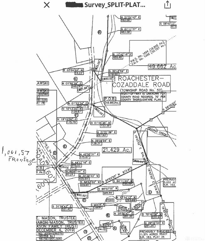 Over 21 plus acres with over 1000 ft of road frontage. This family owned property is a rare opportunity to own a beautiful and versatile tract of land. Approximately 5 acres of wooded mature ground. Peaceful Second Creek winds through the property adding natural beauty and charm. Ideal for farming, recreation or future homesteads.