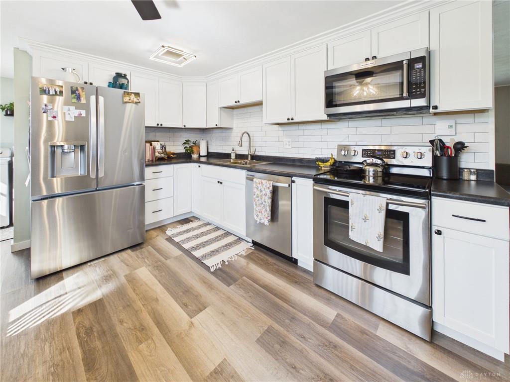 Welcome home to this beautifully renovated brick ranch offering the perfect blend of comfort, style, and low-maintenance living. Featuring 3 bedrooms, 1 bath, and 1,025 square feet, this move-in ready home showcases thoughtful updates throughout, including new flooring, fresh paint, and updated lighting and ceiling fans that create a bright, cohesive feel from the moment you step inside. The spacious, sun-filled family room provides a warm and inviting space to relax or entertain, while the completely renovated kitchen stands out with crisp white cabinetry, durable laminate countertops, and a stainless steel appliance package that makes everyday living both functional and stylish. Step outside to enjoy the quaint concrete patio accented with string lighting—an ideal setting for grilling, relaxing, or enjoying peaceful evenings outdoors. The backyard also includes a storage shed, perfect for keeping lawn equipment and tools organized. Additional highlights include a 1-car attached garage and a large gravel driveway offering ample space for multiple vehicles, trailers, or recreational storage. Major updates completed in 2025 include a standing seam metal roof, gable siding, new gutters and downspouts, updated shed siding, and a new concrete approach and sidewalk, providing added peace of mind for years to come. This turnkey home offers a fantastic opportunity for anyone seeking a stylish, updated property with practical features throughout. Don’t miss your chance to make it yours—schedule your private showing today and be sure to view the virtual tour and floor plans for a complete look at everything this home has to offer!