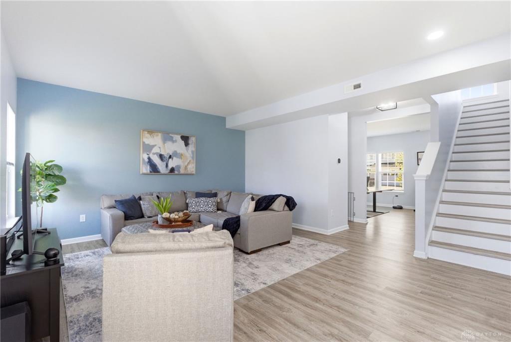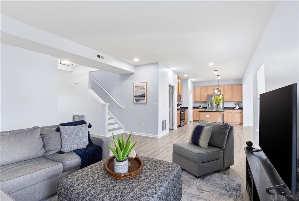 The laundry room is thoughtfully tucked just off the entry from the 2-car garage for everyday convenience. Upstairs, the open loft provides even more flexible living space-ideal for a second living area, workspace, or game room. Two additional bedrooms share a full bath, while the spacious primary suite offers a true retreat with a walk-in closet and private ensuite featuring dual sinks. The full finished basement takes this home to the next level, offering a full bathroom and incredible additional living space that is perfect for movie nights, game days, a home gym, or guest space. Step outside and unwind in the fully fenced backyard with a patio made for relaxing evenings, morning coffee, or weekend cookouts. Located just minutes from dining, shopping, major interstates, and Wright-Patterson Air Force Base, this home offers the space, layout, and location buyers are looking for.