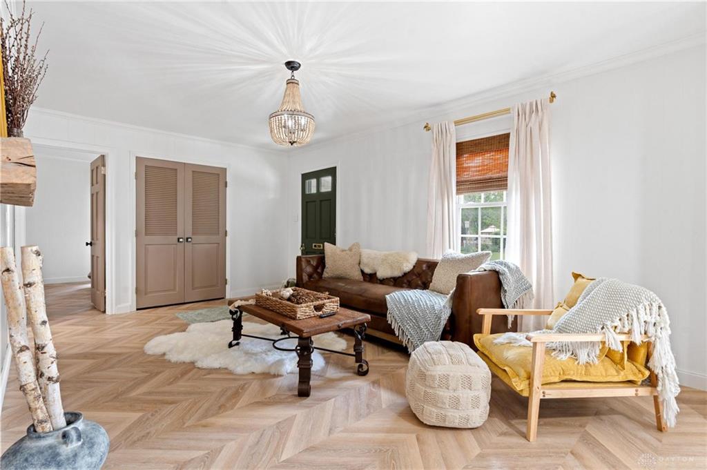 Welcome home to this newly renovated Cape Cod in the heart of Lebanon! Step inside to discover a spacious, light-filled layout featuring custom herringbone LVP flooring throughout the entire main level and fresh paint that gives the home a crisp, modern feel. This home is full of charm with an open-concept design perfect for everyday living and entertaining. The thoughtfully designed chef’s kitchen is a true showstopper complete with custom soft-close cabinetry, handcrafted oak floating shelves, a custom vent hood, quartz countertops, stainless steel gas range, pot filler, and a high-quality farmhouse sink that ties the whole space together. The main-floor bath blends rustic character with modern finishes, showcasing exposed brick, a handmade porcelain tile shower, and a fluted vessel sink. With 3 bedrooms plus a study, there's plenty of room for everyone. The finished basement adds approximately 500sq ft of additional living space, featuring luxury carpet, a laundry room, and a second full bathroom. Major updates bring peace of mind, including Roof (2021), HVAC with UV light whole-house air cleaner & humidifier (2021), Water heater (2024), Garage door (2021), new chimney cap (2024), and newer windows. Custom bamboo blinds throughout the entire home. You'll have plenty of space for storage with the oversized shed in the backyard. Enjoy being just a short walk from Historic Downtown Lebanon’s shops, restaurants, and festivals, with nearby golf, pickleball, trails, and a dog park. Easy access to both Cincinnati and Dayton makes this location unbeatable. This move-in-ready custom-designed home won't last long