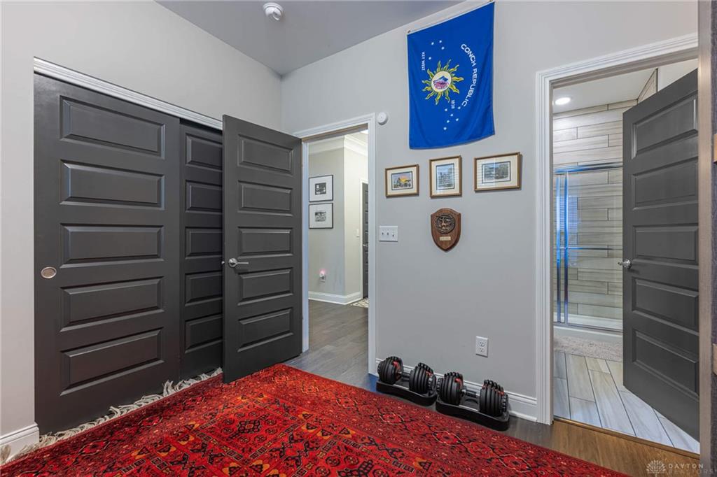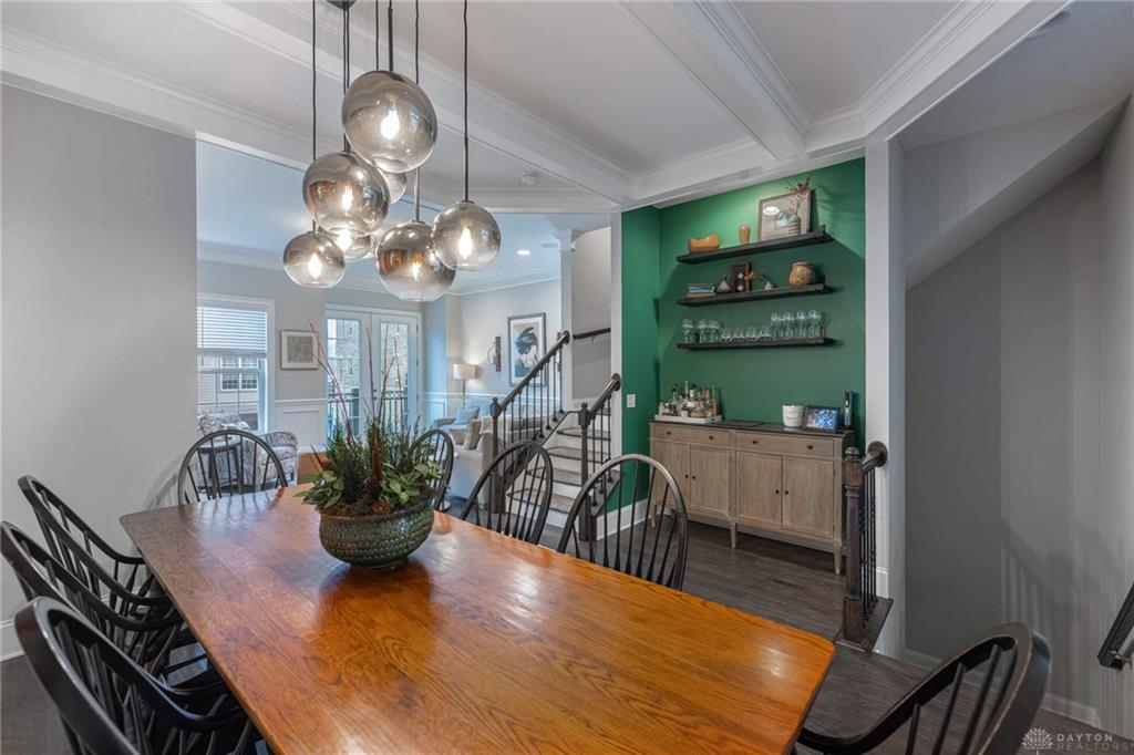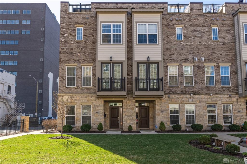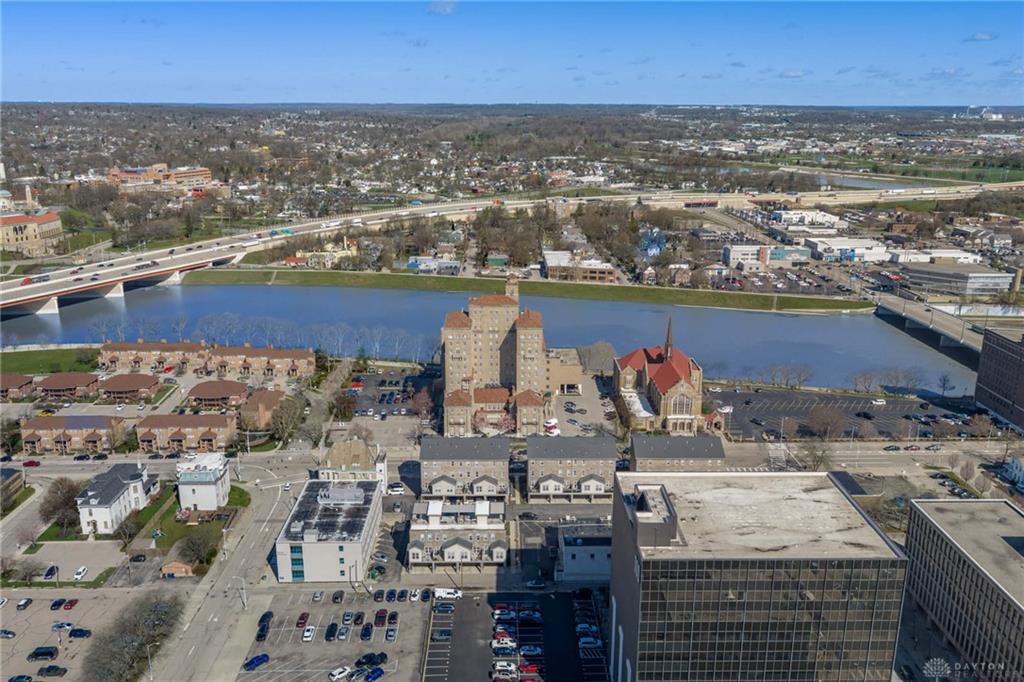 Updated urban townhome condo in downtown Dayton. Walk to the Schuster Center, the YMCA, the bike path, Riverscape, Dragons Stadium and the Dayton Arcade. Spectacular sunset views from the rooftop entertaining space. Three bedrooms each with an attached bath. One bedroom on the main floor making it a perfect spot for guests. The second floor has a large living room, dining room, eat in kitchen and study or office space as well as a half bath. The third floor has the owners suite with large ensuite bath and large walk in closet as well as the laundry in the hall between bedrooms and an additional bedroom with attached bath. The fourth floor is the roof top entertaining space with large outdoor kitchen (refrigerator and cabinet space) as well as a pergola and other entertaining spaces. This townhome is designed for both relaxation and social engagement, making it an ideal home for families, professionals, or anyone looking to blend comfort with a vibrant city life. Updates include roof deck with pergola (22), Outdoor kitchen (24), Sonos sound system with Control 4 Smart Home system that controls TVs on Roof as well as Living and eat in kitchen area. Two car attached garage with opener has entry to the main floor.