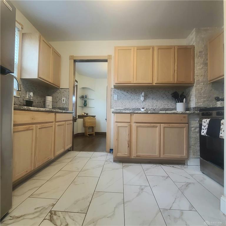 Discover a charming Dayton residence offering an exceptional blend of architectural styles and modern comforts, perfectly situated for an enriched lifestyle. This captivating 2-story home, spanning well-over 1,500 square feet, presents three spacious bedrooms, 1.5 bathrooms, providing ample room for relaxation and daily living. The exterior, a combination of brick and stucco, exudes classic appeal with a welcoming porch that invites you to unwind and enjoy the outdoors.