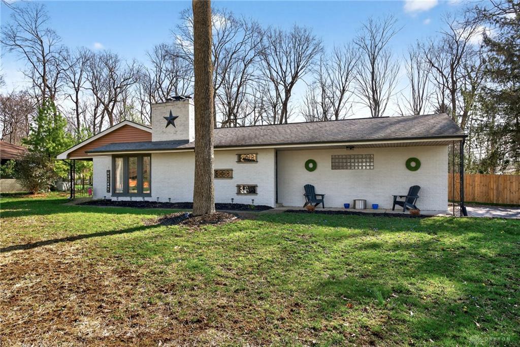 Discover the charm of Beavercreek living in this exquisite ranch-style home, boasting four bedrooms and three full bathrooms across approximately 3000 square feet of meticulously designed space. A welcoming front entry with durable flooring and a striking accent wall sets the tone for the warmth found throughout this residence. The heart of the home features an inviting living area with a robust stone fireplace, floor to ceiling windows and a oversized reading nook creating an ideal setting for relaxation and social gatherings. The open-concept layout seamlessly connects to a modern kitchen, equipped with a central island, elegant granite countertops, and sleek stainless steel appliances including a dishwasher, microwave, range, and refrigerator. The thoughtful design extends to the primary bedroom with an ensuite full bathroom. Two additional bedrooms and a second full bathroom complete the main level of the home. The versatile lower level adds significant value, offering a family room with custom-built bar ideal for entertaining in addition to a home office, fourth bedroom with egress window and third full bathroom. Enjoy outdoor living on the inviting covered patio with vented grill hood and ceiling fan. This breezeway-style patio provides access from the large 2-car garage to the residence and overlooks a spacious, well-maintained yard with a privacy fence, fire pit and mature trees.