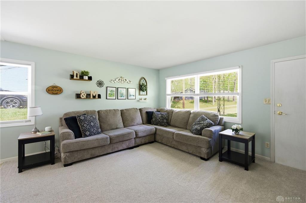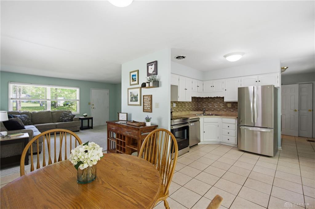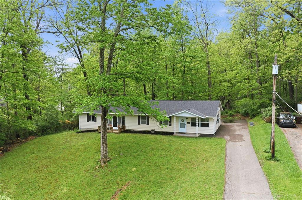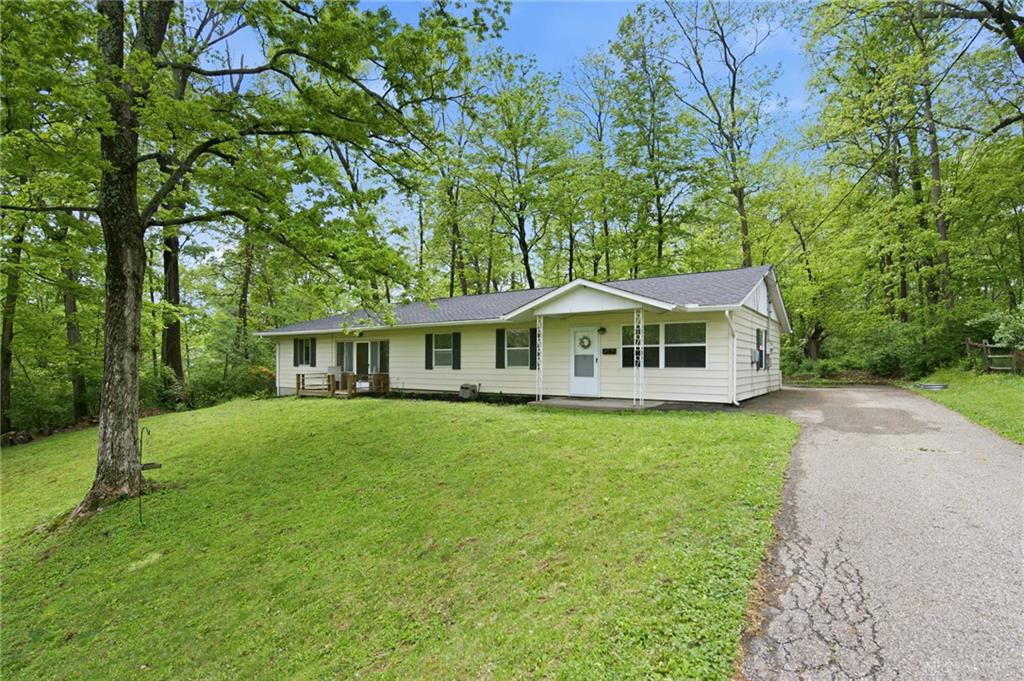Welcome home to this darling vinyl ranch home in Loveland schools, situated on a half acre wooded private lot with no HOA. Tucked back down a long driveway, this home has 3BR, 1.5BA, 1120 sq ft, oversized 2 car attached garage and darling breezeway for extra entertainment space. Open kitchen with updated stainless steel appliances, 1/2 BA connects to primary BR, and cute front porch to enjoy the view. So much space to park, and the huge garage is perfect for extra storage! Updates include - WH 2024, Roof 2024, Carpet 2026, appliances 2021. Don't miss this adorable house in an even better location!