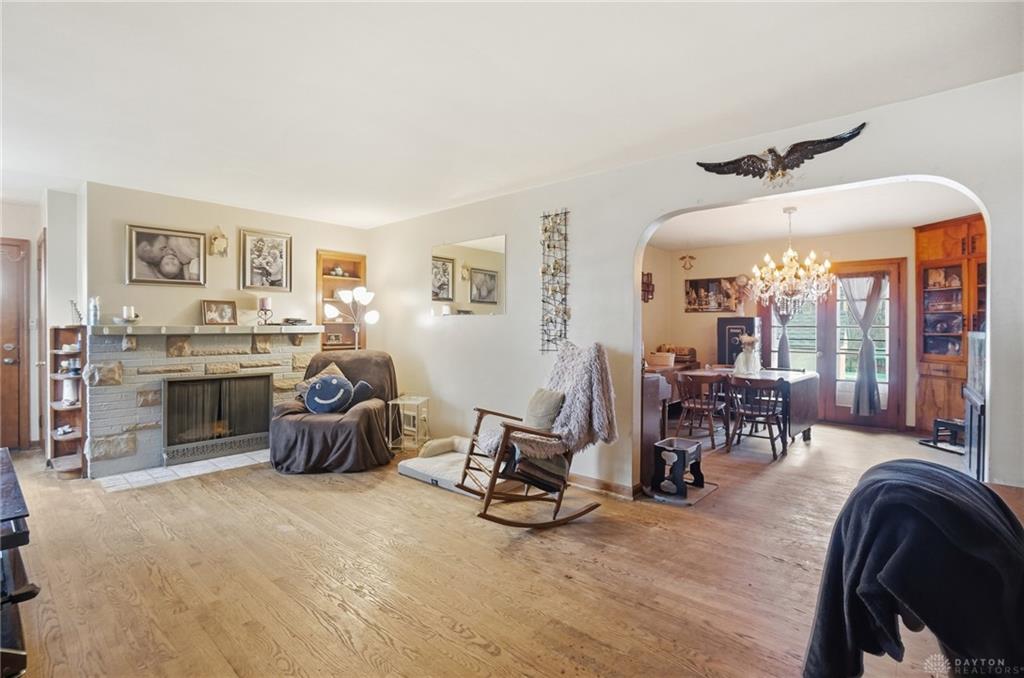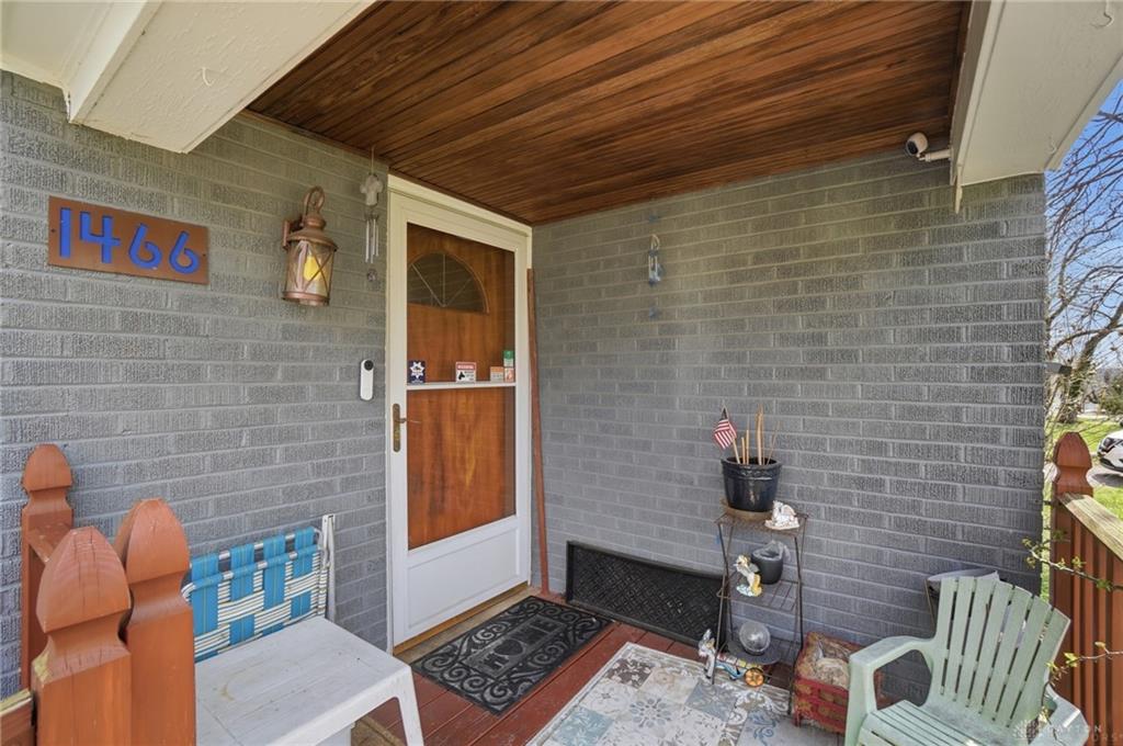 Brick 1.5-story on over half an acre in Beavercreek Schools - with the kind of lot size and classic character that’s genuinely hard to find at this price point in this area. Hardwood floors run throughout the main living areas. Two wood-burning fireplaces - one in the living room, one in the basement. The kitchen features freshly painted cabinetry and tile flooring installed in 2024, along with a 2020 stove, microwave, and dishwasher. The main level bathroom was fully renovated in 2016 with tile on the shower walls, shower floor, and main floor. Upstairs, the primary bedroom offers good closet space and a private half bath - a layout that creates real separation from the rest of the home. Plumbing is already available to install a shower upstairs as well! The unfinished basement offers serious potential - additional bathroom already in place, walk-up exterior access, and enough space for a workshop, storage, and future finished square footage. A radon mitigation system installed in 2016 is already in place. The mechanical and systems updates are where this home really shines. Roof replaced in 2019 - full tear-down with a GAF system and ridge vent. Heat pump system with furnace replaced in 2016 and new condenser added around 2022. Plumbing updated from iron to PEX and PVC in 2016, including new water shut-off valves throughout. Well pump and resin water tank replaced in 2017. Water softener installed in 2023. Gilkey Andersen windows on the main and upper floors. Gutter guards added in 2019. Exterior painted in 2021. Chimney caps installed in 2020. A breezeway connects the home to the attached two-car garage. Home is all electric. Fireplace not warranted.