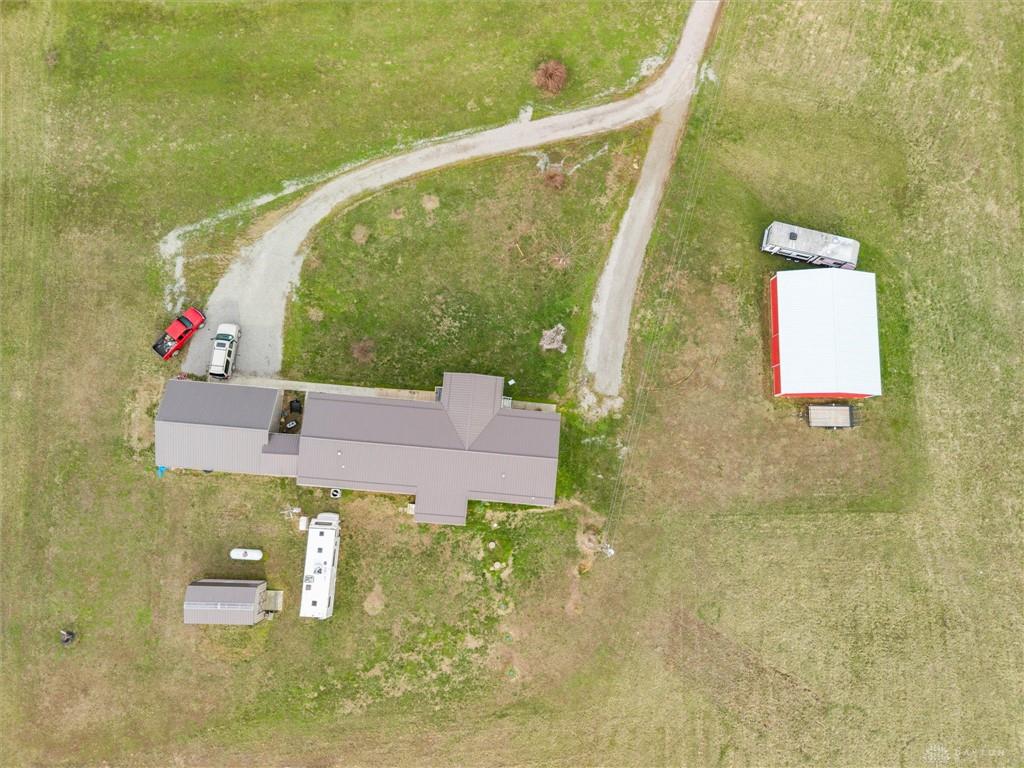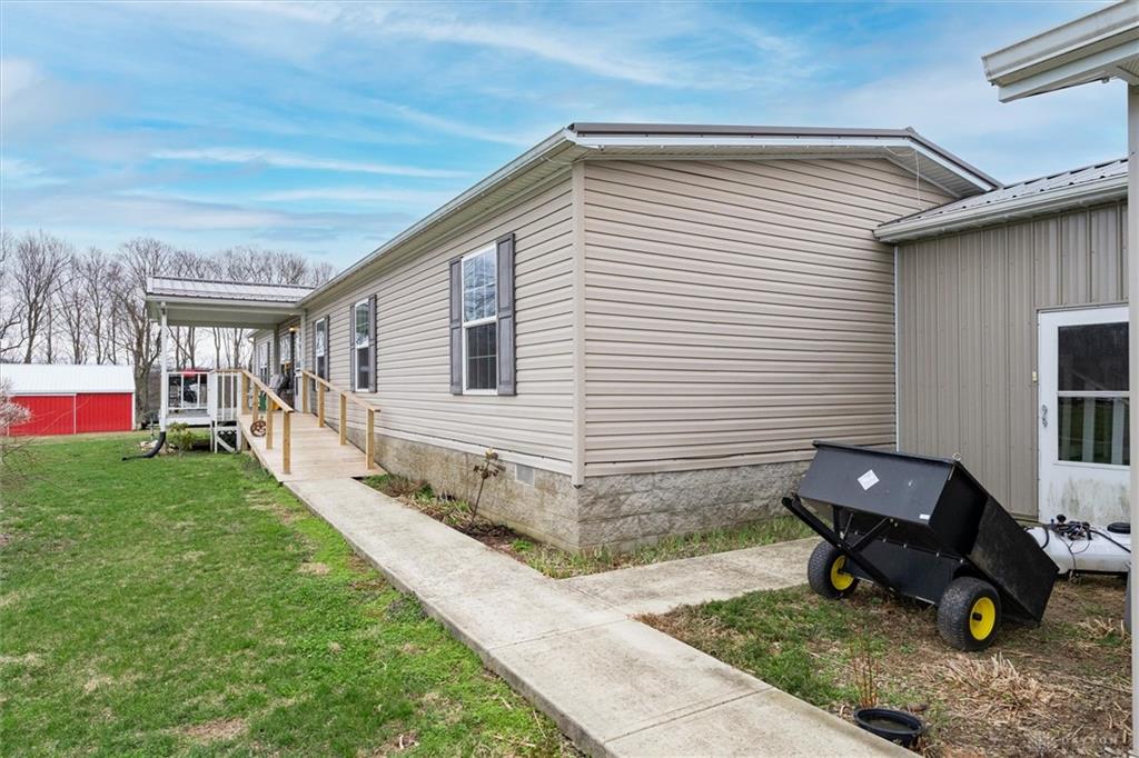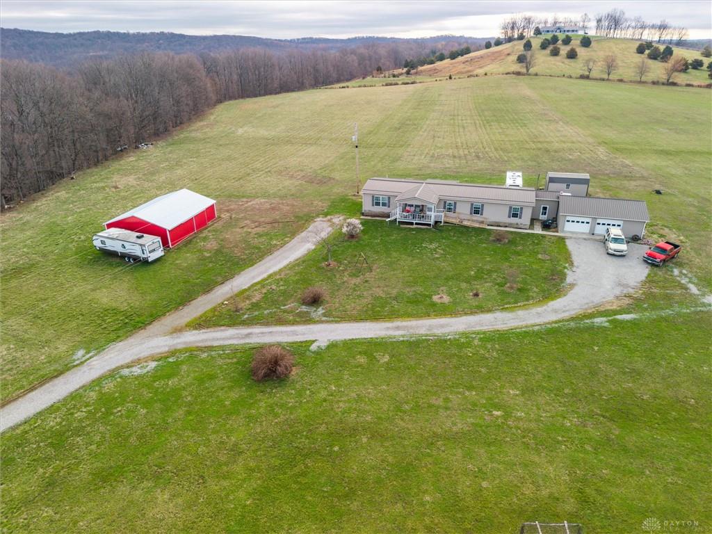 Enjoy peaceful country living with this well-maintained 2017 double-wide manufactured home on 14 acres featuring a stocked pond and plenty of room to spread out. The home offers 4 bedrooms, 2 full baths, a living room and family room, plus a large covered porch with ramp accessperfect for relaxing and enjoying the views. The property includes a 24' x 36' oversized 2-car garage, two barns (one wood, one pole barn), and 3 RV hookups, making it ideal for hobbies, equipment, or guests. Additional features include a metal roof installed in 2023, county water, and septic system. An additional county water tap and septic on approximately 4+ acres provides excellent potential for another homesite or camper setup. All kitchen appliances stay. Conveniently located a short distance from Hillsboro, Bainbridge, and Chillicothe, offering the perfect blend of country privacy and accessibility.