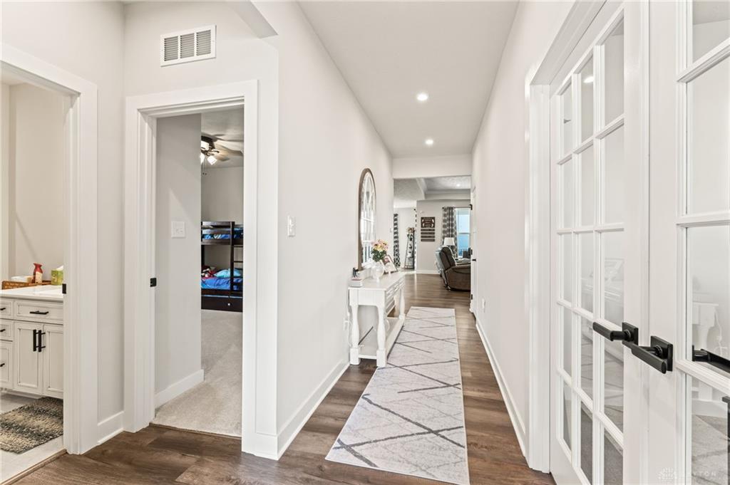 Welcome to this stunning ranch home on a corner lot in a cul-de-sac offering modern finishes, thoughtful upgrades, and peaceful pond views. Designed for easy everyday living and entertaining, this home features Luxury Vinyl Plank flooring throughout the main living areas, a spacious great room with a tray ceiling, and a beautifully appointed kitchen with granite countertops, a custom pantry, stainless steel gas range, microwave, and dishwasher. At the front of the home, an office/flex space with French doors provides the perfect spot for working from home, a playroom, sitting room, or additional guest space. The split-bedroom floor plan offers added privacy, with the primary suite tucked away as its own retreat. The primary bedroom features a tray ceiling, his-and-hers closets, and direct access to the covered rear deck—perfect for morning coffee or quiet evenings overlooking the water. The beautiful ensuite bath includes dual sinks with vanity space and a large walk-in shower, creating a comfortable and functional owner’s retreat. The additional bedrooms are thoughtfully positioned on the opposite side of the home, creating comfortable separation for family or guests. Outdoor living continues with an extended stamped concrete patio and dedicated firepit area with fenced in yard, creating an ideal space to relax or entertain. The 3+ car garage with epoxy floors offers excellent storage, including an extended third bay and a convenient rear garage door for easy access to the backyard. The expansive basement provides impressive finished living space along with additional unfinished space for storage or future expansion. With an egress window and full bathroom already in place, there is excellent potential to add a fourth bedroom. Located in Troy, this beautifully maintained home offers the feel of new construction with the benefit of added upgrades already completed. A wonderful opportunity to enjoy modern ranch living in a beautiful neighborhood.