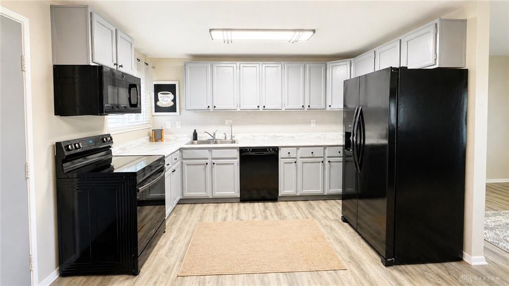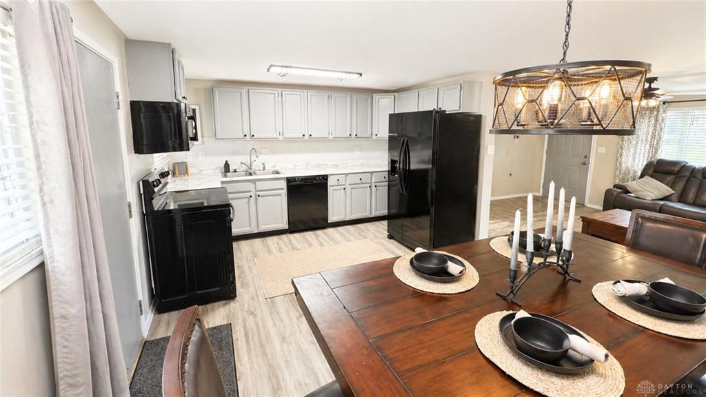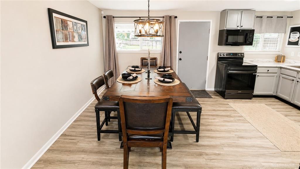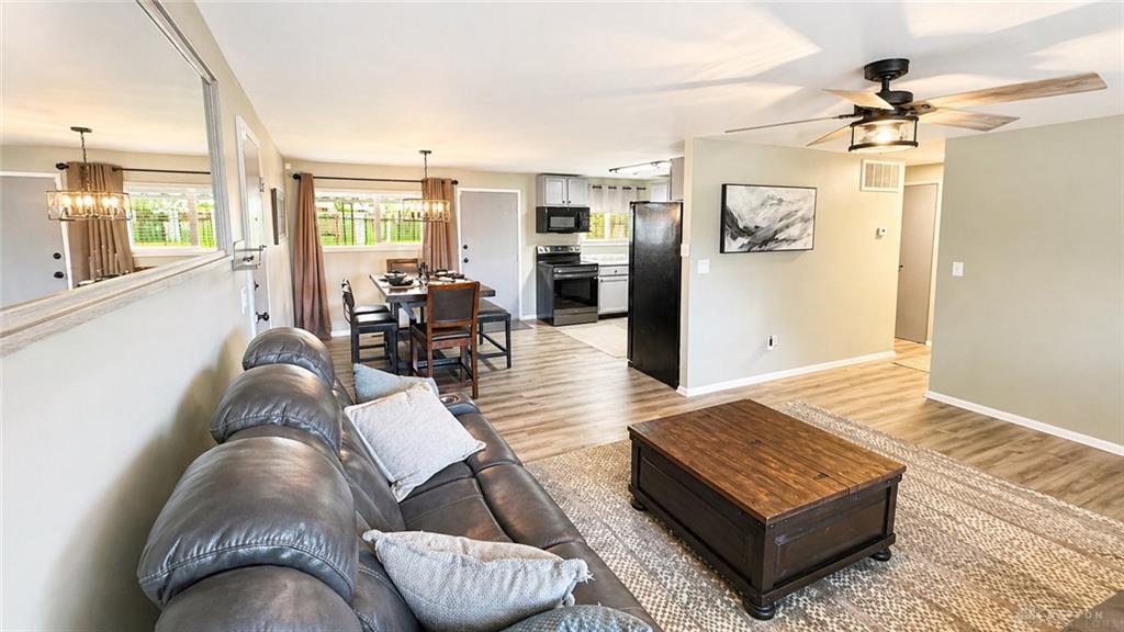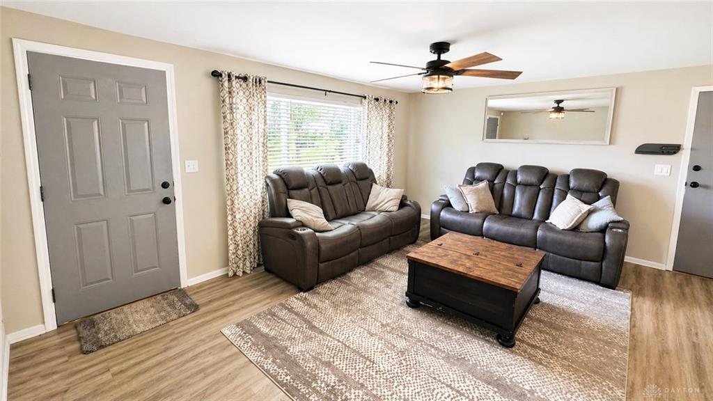 Welcome home to this nicely updated brick ranch in Moraine offering easy one-level living and modern, low-maintenance style! Inside, you’ll find spacious living areas with durable luxury vinyl plank flooring that adds both warmth and practicality throughout the home. The updated kitchen and dining area flow nicely for everyday living and entertaining. Step outside to enjoy the fully fenced backyard featuring a covered back patio—perfect for relaxing, grilling, or enjoying the outdoors in any season. Need extra storage or workspace The huge backyard shed provides endless possibilities for tools, hobbies, or seasonal items. Trane Furnace and Central Air. The attached garage includes washer/dryer hookups for added convenience, and major updates such as a newer roof and newer windows help provide peace of mind. Conveniently located near shopping, dining, parks, and highway access, this move-in ready Moraine brick ranch is ready to welcome you home!