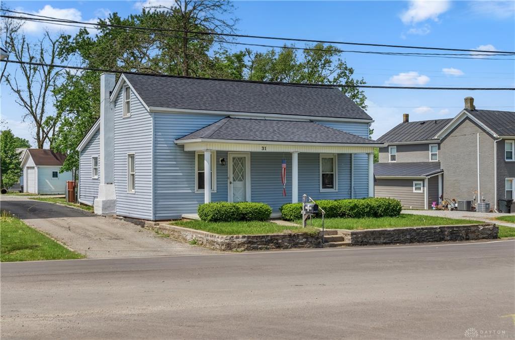 Welcome to 31 Clarksville Rd in Waynesville Ohio the antique capital of the world. If you are wanting that small town charm but yet 20 minutes from anything and everything local this home is for you. This 1853 home has all the character of an older home but with the modern day conveniences. The kitchen and bathroom was updated by the previous owner. Kitchen has tile backsplash along with porcelain tile wood grain floors. The porcelain tile wood floors flow through the mud room into the utility room into the bathroom where heat is under the tile for the spa like feel. The front room has a unique built in wine rack that you could turn into your very own bourbon room or use as a dinning area. The primary bedroom is located downstairs with 2 bedrooms upstairs. Enjoy endless hot water plus higher energy efficiency with your tankless water heater. Lastly enjoy your 2 car garage with plenty of storage space with an entrance off the alley way. This home sits in the heart of Corwin right across from the bike path, walking distance to 3 amazing small business/restaurant such as Sun Sprouts, Simple Roots Bulk Foods and up the hill is Roscoe's Pizza. And for all your home and equipment needs Red Barn Lumber and Miami Valley Power Equipment are just a hop, skip, and jump from home. Need fresh air Clint Fultz River Park along with Fishing & canoeing on the little Miami River is just steps away from your front door. Winter blues no problem the best sledding in the area is on the backside hill at the Miami Cemetery. The groundskeeper makes sure the entrance gates are closed on a good snowy day. Act quickly & you can be moved in just in time for the Annual Memorial Day Ceremony & The American Legion Newland/Trimble Post 615 of Waynesville's Picnic at the cemetery to get to know your neighbors. Call for your personal showing to check it out yourself.