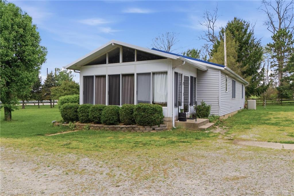 Nice country property situated on 1.3 acres with multiple outbuildings, conveniently located just minutes from Wilmington and I-71. A rare find for car buffs or hobby enthusiasts, this 1207 SF modular-built home offers a living room with built-in bookcases, eat-in kitchen with counter bar open to the breakfast nook, range and refrigerator included, two pantry closets, 2 bedrooms, full bath, laundry/half bath combination, and a 3-season sunroom. The exterior is where this property really shines, featuring two separate 2-car block garages, a 42x36 barn with enclosed lean-to, and an older storage shed plenty of space for vehicles, equipment, or projects. Property is being sold in "as is" condition as part of an estate. Conventional or cash offers preferred.
