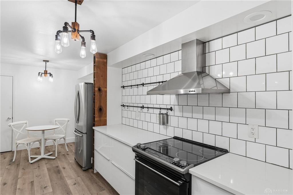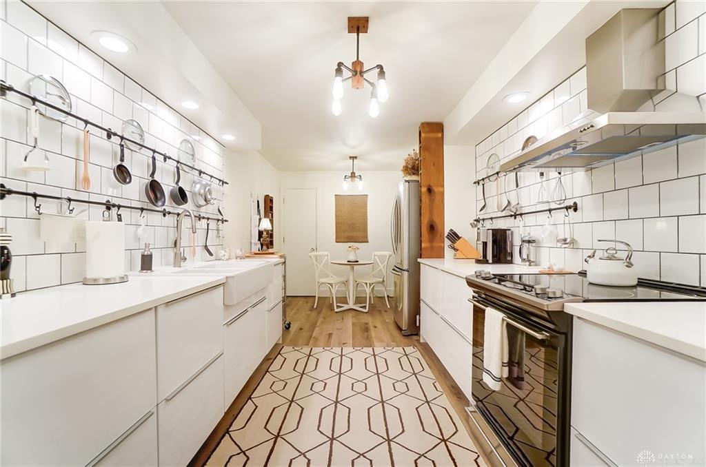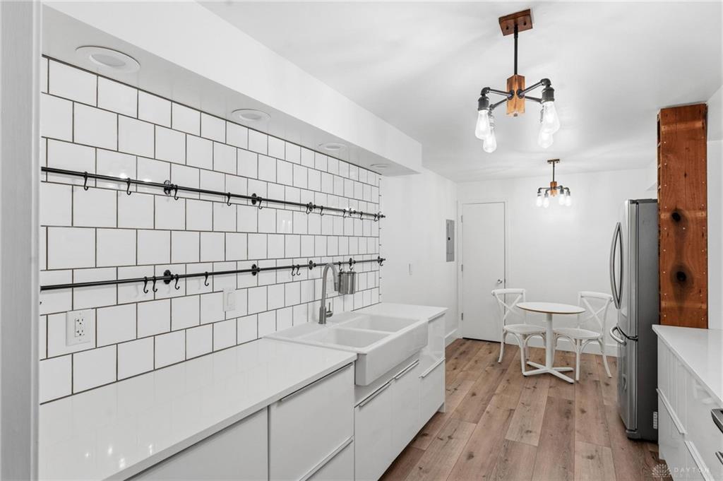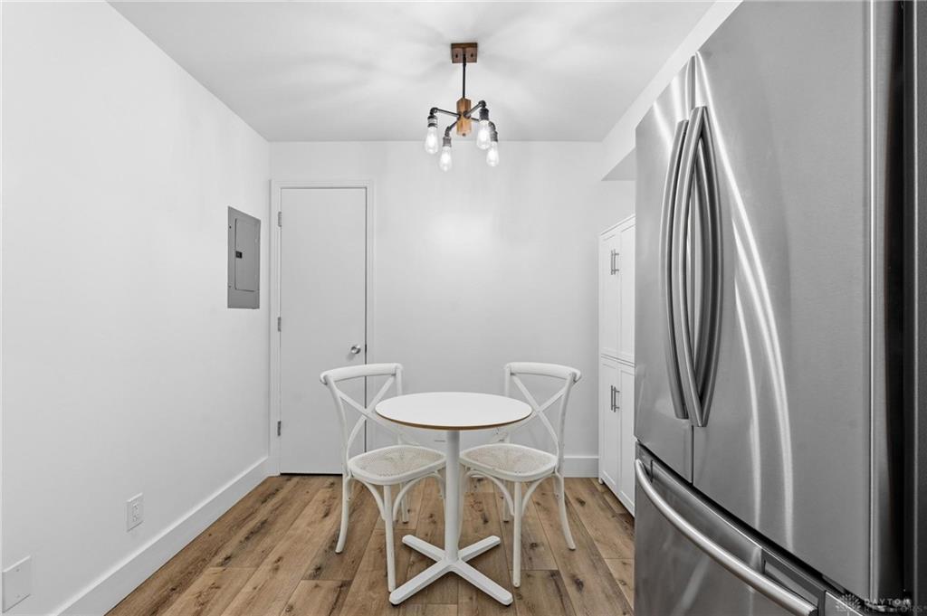 Discover maintenance-free modern living in this beautifully renovated condominium, ideally situated on a quiet street in the Kettering School District. This residence presents an exceptional lifestyle opportunity. The classic brick building features a welcoming walkway leading to the secure building with glass double doors, setting an inviting tone from the moment you arrive. With 2 bedrooms and 1.5 bathrooms spread across 1,429 square feet, this single-story unit provides ample space for relaxation and entertaining. The modern kitchen is a culinary delight, featuring crisp white subway tile, sleek newer stainless steel appliances including a range, refrigerator, and dishwasher, bright lighting, a farm house sink, and a charming dining nook. Durable, gorgeous LVP flooring extends throughout many living areas, enhancing the home's contemporary appeal. The bright living area boasts a glass sliding door that opens to a private balcony, offering tranquil views and an ideal spot for outdoor enjoyment. Both bedrooms provide comfortable and inviting atmospheres, with the primary bedroom featuring warm wood floors, large windows for natural light, ample storage with two sets of closet doors. The sleek bathrooms are designed with modern vanities, clean lines, and elegant tile flooring. Additional conveniences include an elevator for easy access, an extra room in the basement for tons of storage, and secure parking in a 2 car, attached garage. Located at 3225 Southdale Drive, this condominium provides a serene residential setting while maintaining close proximity to local amenities and Kettering's conveniences. **The entire building upgraded the electrical and every unit was required to do the same, so the electrical is all brand new** The air conditioner is new in 2024 and is located on top of the building. The water heater is in a locked room. Please call Towne Properties with any questions you may have on the HOA 🙂