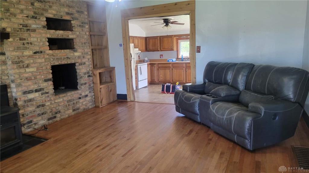 This two-story home in Urbana offers 1,977 square feet of living space on a 1.47-acre lot. The property includes four bedrooms and two bathrooms. Interior features include wood flooring and a kitchen equipped with a range, refrigerator, microwave, and disposal. A deck and porch provide outdoor space. The washer and dryer are included with the home. The property is located in a rural setting with access to local amenities.