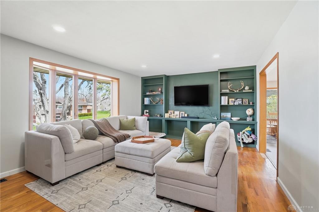 Welcome home to this warm and inviting brick bi-level in Franklin. From the moment you step inside, the character of this home shines. Original parquet flooring greets you at the entry, and original hardwood floors flow through the spacious living room where a classic built-in shelving and media center and a large bay window fill the space with warmth and light. The kitchen is bright and cheerful with a skylight overhead, a gas range, stainless steel appliances (2023), a wine fridge, and bar seating at the counter. Slide open the glass door and step out to a brick patio and a peaceful, partially fenced backyard with a little pond. Quiet mornings out here are something special. The primary suite features a large closet and its own attached full bath. Rounding out the main level are two additional bedrooms and a hall bath that is full of personality with a lovingly preserved vintage pink tub, toilet, and sink updated just enough to feel fresh. Downstairs is a cozy bar and living space anchored by a brick wood-burning fireplace, perfect for movie nights and gatherings. Laundry, plenty of storage, and an attached 2-car garage are all tucked in below as well. Major updates already done: tear-off roof (2014), water heater (2021), newer Anderson windows, fresh paint, and updated fixtures throughout. Schenck Elementary is right around the corner with Franklin Junior High and High School nearby. Crains Run Nature Park, downtown Franklin, the farmers market, and a new brewery coming in 2027 are all just minutes away. Easy highway access ties it all together.