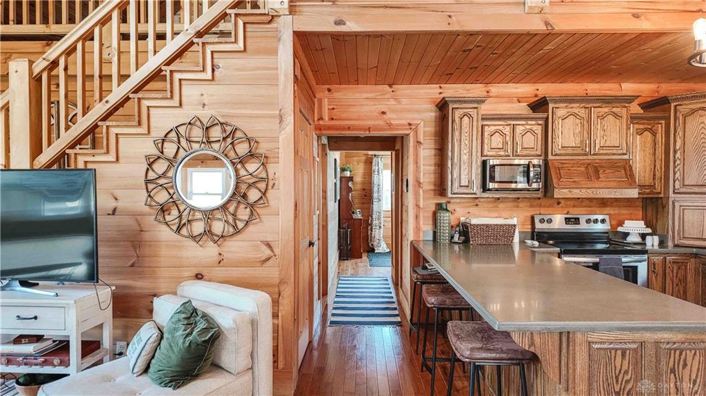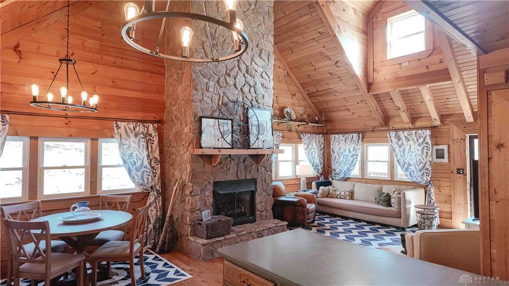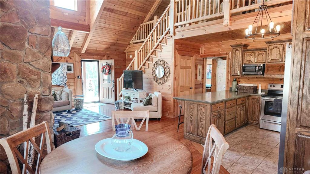 Exceptional 30±-acre retreat featuring wooded acreage, striking rock formations, a natural waterfall, and a stocked pond-delivering a Hocking Hills"style experience with privacy and scale rarely found. This 2012-built log cabin offers 1,330 sq ft with loft, 2 bedrooms, and 2 full baths-designed for flexibility as a luxury getaway or income-producing short-term rental. Currently operating as a short-term rental and equipped with signage and check-in instructions, offering immediate income with expansion potential across additional rental platforms. Offered fully furnished, including window treatments and outdoor furniture, providing a true turnkey opportunity. Furnishings may remain or be removed at buyer's preference. Recent improvements include new appliances, new HVAC, updated plumbing fixtures, new interior lighting, and a newly poured concrete patio with fire pit. A 28x36 pole building with 16' ceilings, two 10' garage doors, and 6" gutters/downspouts provides excellent storage and future-use potential. Privately positioned atop a hill on a quiet, tree-lined road. Conveniently located 7 miles to Pomeroy, 10 miles to Albany, and 20 miles to Athens