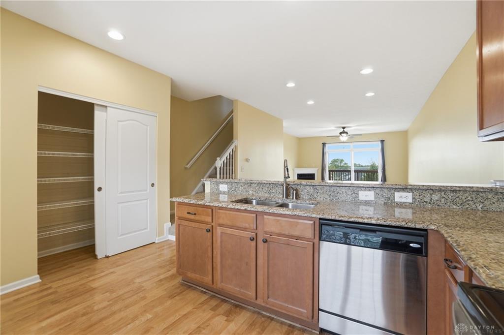 This freshly painted condo offers a perfect blend of style, comfort, and convenience. The beautifully appointed kitchen features 42" cabinetry, granite countertops, and stainless steel appliances, including a dishwasher, disposal, and microwave. A separate pantry with built-in shelving provides additional storage.