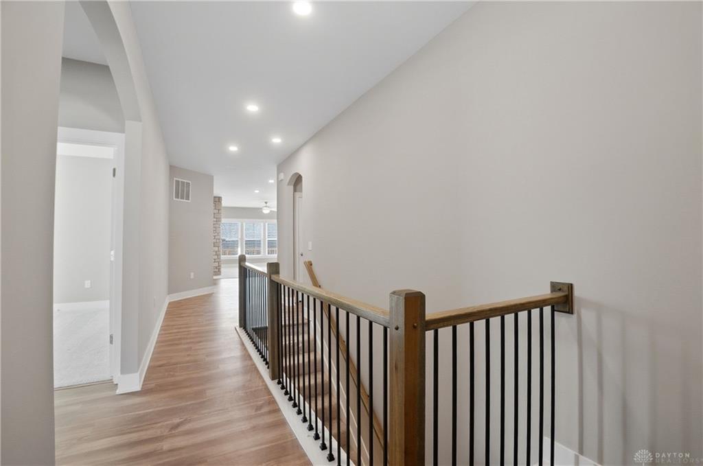 Wake to Sunrise coffee on your stone front porch and unwind with Sunset views from your covered balcony in this nearly new custom split-ranch retreat. Designed for effortless elegance, the light-filled great room showcases a dramatic stone fireplace and walls of windows that invite the outdoors in. The gourmet kitchen is the heart of the home, featuring a stainless steel appliance suite, an expansive wraparound granite bar perfect for gathering, and a walk-in butler's pantry worthy of a true entertainer. Escape to the serene primary suite, where picturesque views create a peaceful backdrop. The spa-inspired ensuite offers a tiled walk-in shower with shower seat, freestanding soaking tub, and dual vanities ? your own private sanctuary. Two thoughtfully separated guest rooms share a well-appointed hall bath, offering comfort and privacy for family or visitors. A massive walkout lower level with bath rough-in awaits your vision, ideal for a future recreation space, home theater, or private retreat. Situated on a spacious corner lot just steps from the charm, festivals, and boutiques of historic downtown Lebanon, with easy access to Interstate 71 and Interstate 75 for a seamless commute. Luxury, lifestyle, and location perfectly aligned.