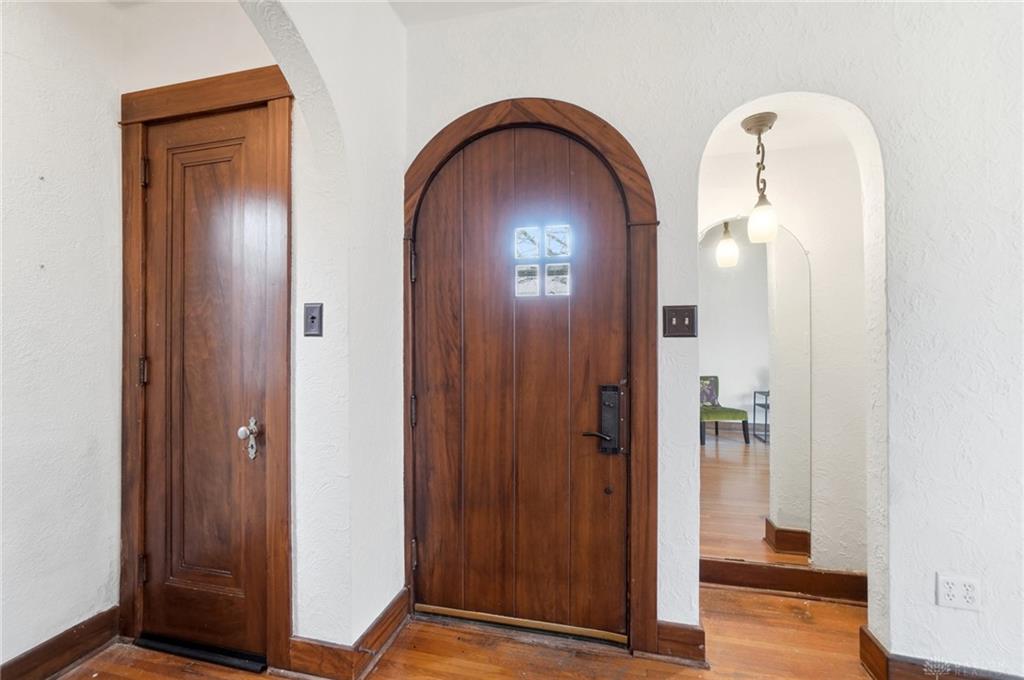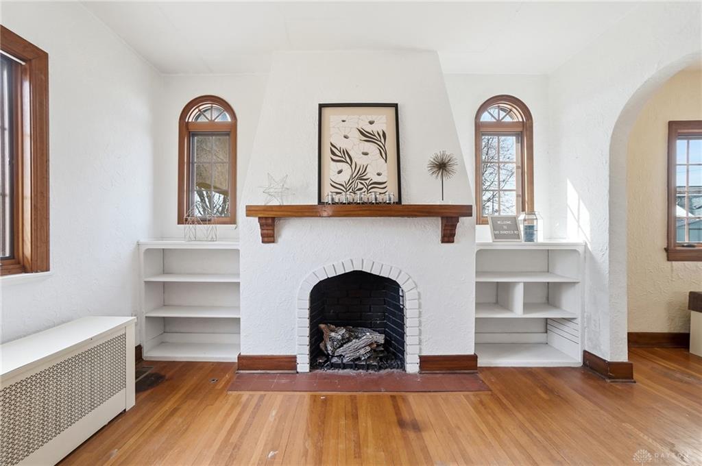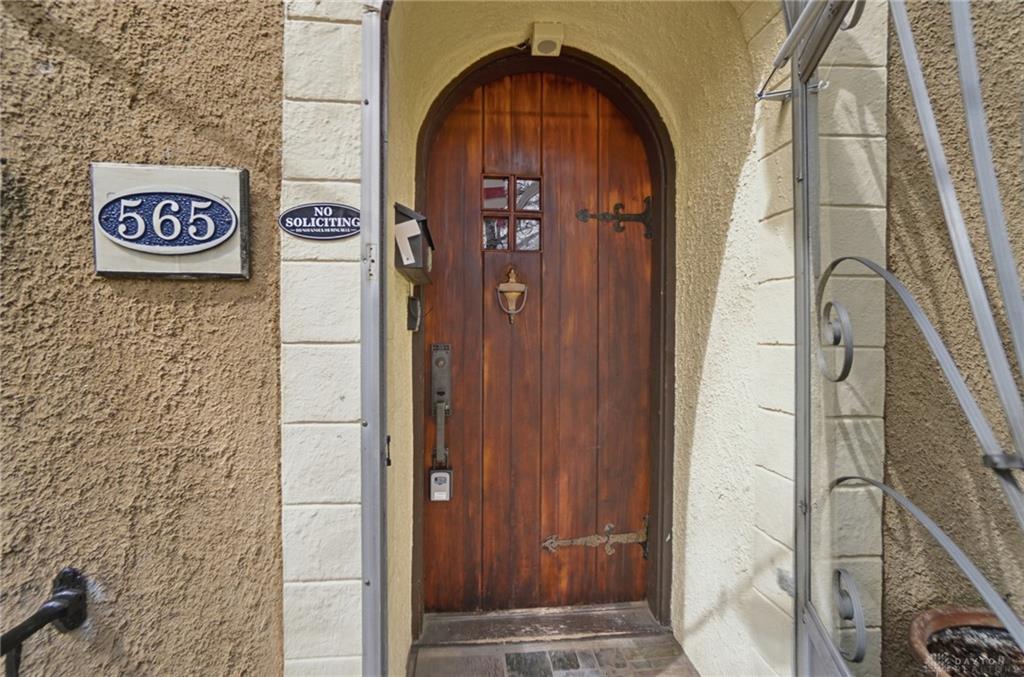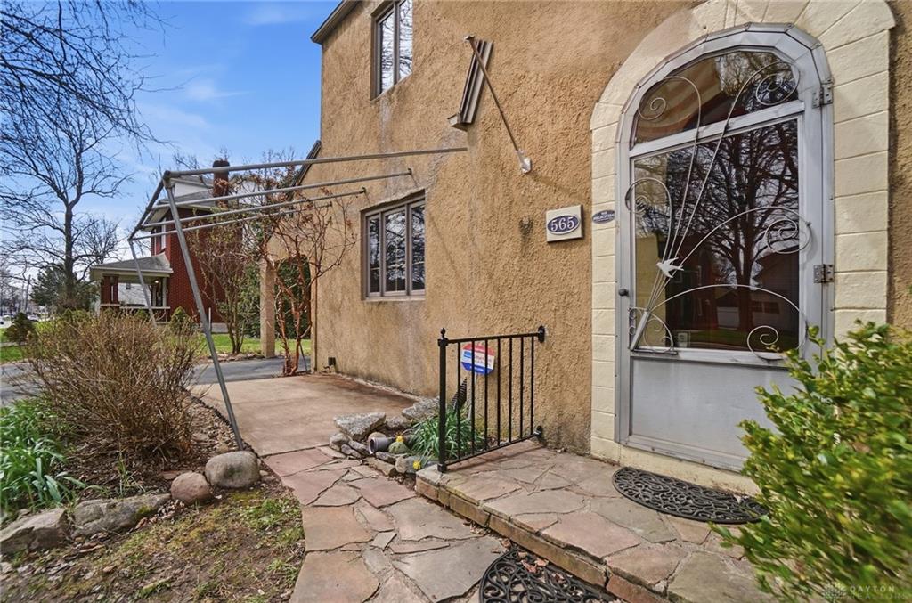 Welcome to this gorgeous 1930 Tudor at 565 Shroyer Rd, full of timeless character and craftsmanship, situated on two lots. This well-cared-for home blends preserved historic charm with thoughtful updates, offering 3 bedrooms, 1 full bath, and a half bath, and approximately 1400 square feet of living space. From the moment you arrive, the classic stucco exterior and distinctive wood front door set the tone. Inside, you will find original hardwood floors, curved doorways, and a wrought iron stair rail that highlight the home’s unique architectural style. The living room features a cozy gas fireplace and a charming nook near the entry, while bay windows fill the space with natural light. The kitchen offers tile countertops and a full appliance package, including range, refrigerator, microwave, and dishwasher. Upstairs, the updated bathroom maintains its character with the original tub reglazed and built-ins preserved. Two bedrooms feature curved window alcoves, and all three bedrooms include hardwood flooring. Major updates provide peace of mind, including a full HVAC system and ductwork installed in 2023, a radon mitigation system in 2023, attic insulation in 2024, and a bedroom window replaced in 2024. Additional improvements include basement plumbing updates, a resealed bathtub, and a newer washing machine. The basement includes a waterproofing system, a second gas fireplace, a laundry area, storage space, and a half bath, allowing the home to be considered a 1.5 bath layout and offering flexibility for additional living space. Outside, enjoy a generous, fenced yard with a paver patio, a built-in fire pit, a screened porch with a ceiling fan, and a newer shed installed in 2026. The enclosed patio connects to the attached one-car garage, adding convenience and charm. Located on a beautiful tree-lined street near restaurants, shopping, and downtown Dayton, this home offers the perfect blend of character, updates, and location.