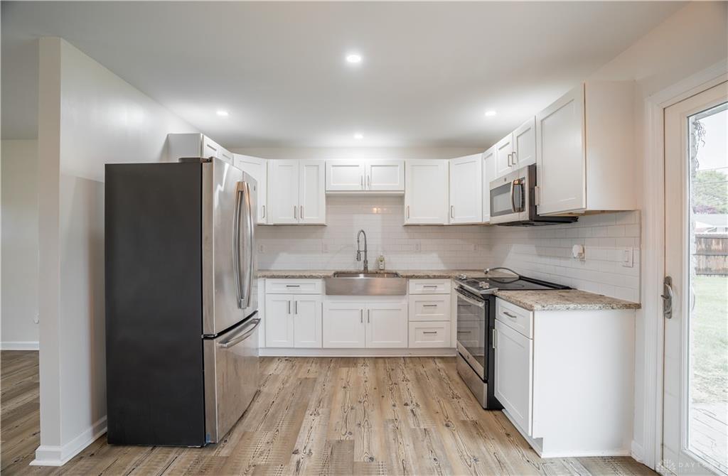 Welcome home to 626 Morning Glory Ln in the heart of Union—where updates, style, and convenience come together seamlessly! This beautifully refreshed 3-bedroom, 2 full bath brick ranch offers 1,053 square feet of thoughtfully updated living space, truly making it move-in ready with all the hard work already done for you. From the moment you arrive, you’ll appreciate the freshly paved concrete driveway (2026) and the clean, inviting curb appeal, complemented by a roof and gutters that are less than 5 years old. Step inside to a bright and welcoming family room that flows effortlessly into the dining area and kitchen—perfect for both everyday living and entertaining. The kitchen shines with newer stainless steel appliances and sleek quartz countertops, creating a modern and functional space you’ll love. Throughout the home, you’ll find brand-new LVP flooring (2026), fresh paint (2026), and updated lighting that gives the entire home a cohesive, contemporary feel. Both full bathrooms have been recently remodeled within the last 5 years, offering stylish finishes and added peace of mind. Even the major mechanicals have been addressed with brand new sewer lines installed to the street. The attached one-car garage features a freshly painted floor and an updated laundry area with new tile flooring, paint, and recessed lighting for added convenience. Step outside to your private, fenced backyard—complete with a charming stone patio that’s perfect for relaxing summer evenings while kids and pets play freely. Located in the desirable Northmont City School District and just minutes from shopping, MetroParks, and easy access to I-70 and I-75, this home offers both comfort and connectivity. Don’t miss your opportunity to own this beautifully updated, turnkey home—schedule your showing today!