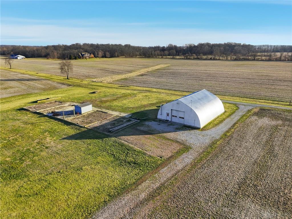 Total of 56.76 acres lays in both Greene and Clinton Counties. 466 feet frontage- 668 New Burlington Road. 30.927 of the acres is in Greene County. 25.838 of the acres is in Clinton County. The Greene County line and the Clinton County line meet in about the middle of the property. 42 acres are Crop acres. One building - 44' X 59' Quonset w/2 doors 12'Wide and 11' high with one service door. Well for livestock. 200 amp electric in building. 200 amp available for a new home. Drive way onto the property. Drive lane to the rear area of the property has trails continue through the wooded area. Water at the street on New Burlington Road.