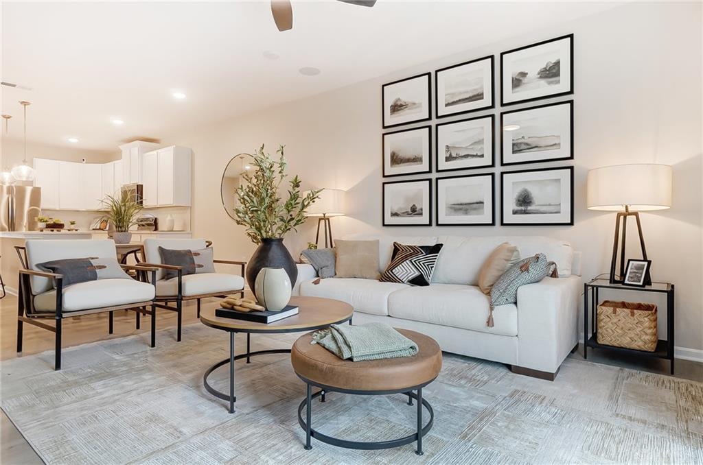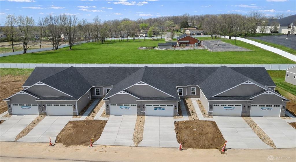 Convenient one-floor living in this 2-bedroom, 2 full bath ‘no steps’ ranch design. Approx. 1,278 sq. ft. of living space! 9-foot ceilings. Pocket office. Beautiful eat-in kitchen w/ large island & storage pantry. Open Great Room w/ access to private 9x9 patio w/ privacy fence. Grand Bedroom w/ walk-in closet, ft. attached bath, walk-in shower, double vanity. 2-car garage w/ opener. First Floor Laundry w/ Util. Sink. Washer, dryer, & refrigerator included. Community provides professionally managed yards. Wooded walking trail, community firepit & pergola picnic area. Upgraded features in this home: Tiled Kitchen Backsplash, Granite Kitchen Tops, End Unit.