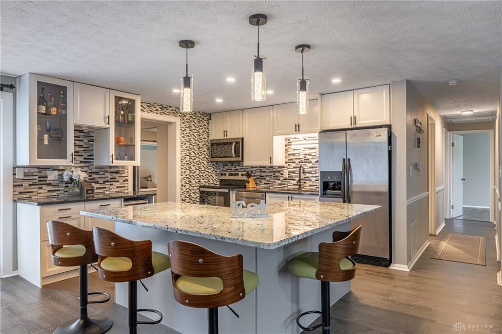 Forget everything you know about bi-levels. This massive, fully reimagined home offers an abundance of modern living space A completely open-concept main floor, the spacious living room flows seamlessly into a chef-inspired kitchen outfitted with granite countertops, soft-close cabinetry, LED lighting, stainless-steel appliance package, and centered around an inviting island with elegant pendant lighting—perfect for hosting. To top it off, a dedicated beverage station—featuring a custom cabinet wall, coffee bar, and integrated wine fridge—offers the ultimate storage solution for your morning routine and evening entertaining. A secondary living suite located off the kitchen, featuring its own living room with bay window, deck access, and a private bedroom with a full en-suite bath. This layout is ideal for those seeking a split-bedroom retreat or a dedicated area for extended family and long-term guests. The main level is completed with three additional generous bedrooms and two remodeled full baths. The lower level features a second family room with fireplace—the perfect spot for movie nights or relaxing. This level also includes a laundry room and a half-bath. Beyond the garage lies a huge, versatile space! Whether you need a climate-controlled workshop, an exercise room, or additional finished living area, this room is a blank canvas. It also features a convenient walk-up, providing seamless access to the yard for projects. Step outside to your deck, the perfect setting for summer BBQs and outdoor gatherings. Dual furnaces, dual water heaters, and dual A/C units for perfect climate control. Schedule your private tour today!