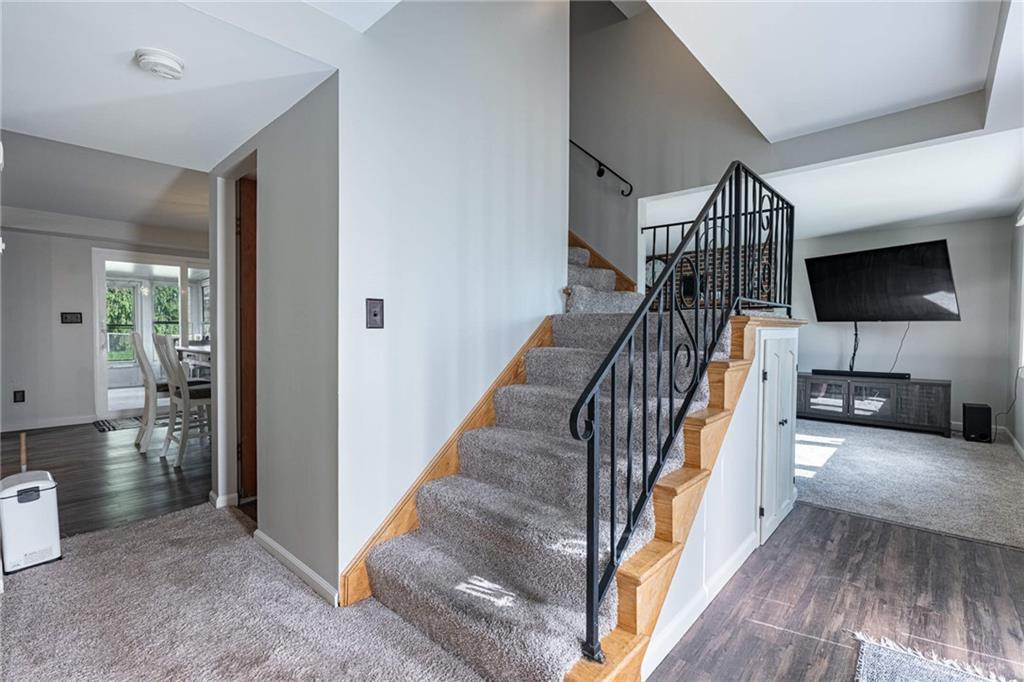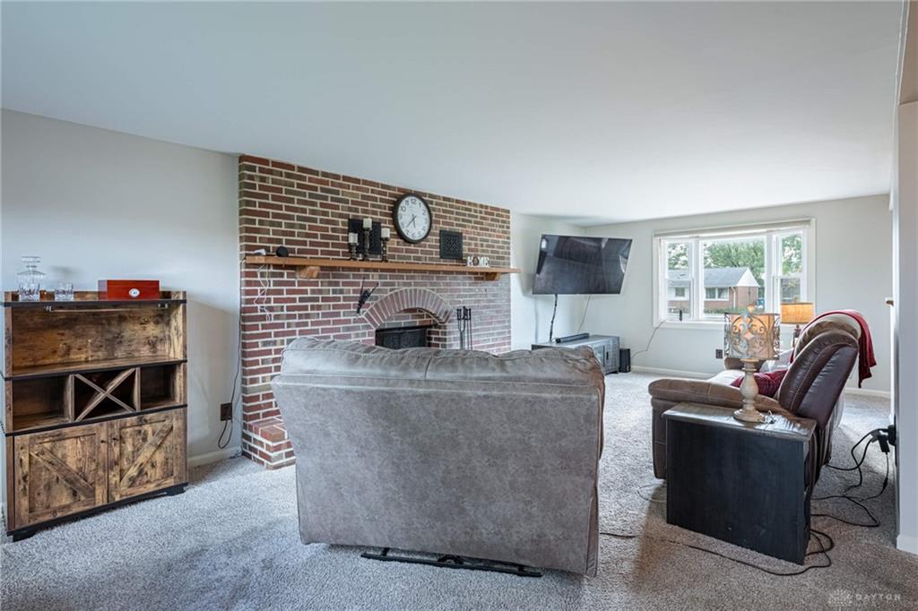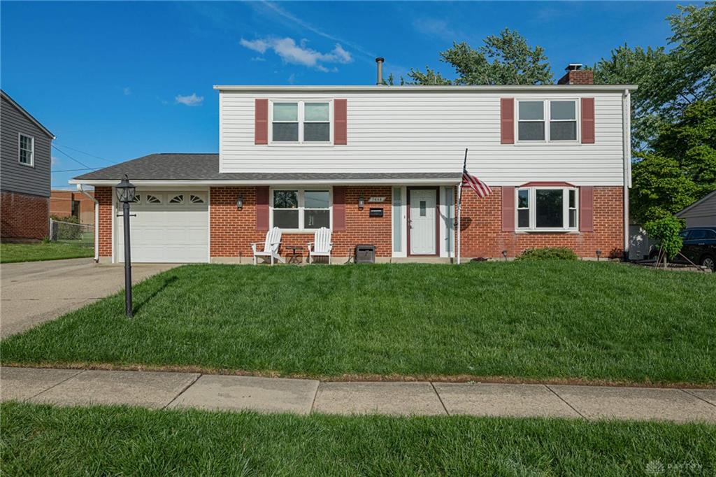 Discover an exceptional lifestyle in this beautifully appointed 2-story residence in Dayton, OH, offering 2052 square feet of refined living space. The classic brick and wood siding exterior, a well-maintained lawn, and a spacious driveway create an inviting first impression. A grand staircase immediately captures attention upon entering, setting a tone of warmth and sophisticated design. The bright living room, centered around a cozy fireplace, offers clear views of the stairway and connects effortlessly to the dining and kitchen areas, perfect for entertaining. The spacious kitchen is a culinary dream, featuring modern stainless steel appliances including a dishwasher, microwave, range, and refrigerator, along with abundant cabinetry, generous counter space, and a kitchen island. The dining area, enhanced by warm wood flooring and a stylish chandelier, provides an inviting ambiance and offers direct access to the outdoor patio. The residence features four comfortable bedrooms, each designed as a tranquil retreat. The two full and one half bathrooms are thoughtfully designed, including a new jetted bathtub installed in 2023 and an updated hall bath from the same year, alongside a half bath updated in 2021. A bright sunroom offers a peaceful indoor-outdoor connection with expansive views of the surrounding greenery, featuring roof flashing and sealing completed in 2024. The property includes a 3-car garage, with a new garage door for the two-car section installed in 2025 and a new garage door opener in 2024, plus a new opener for the single-car garage in 2025. Recent updates enhance comfort and efficiency, including a new main electric panel and a new water heater, both installed in 2019. The private backyard oasis, complete with a fence and patio, is ideal for relaxation and entertaining, offering a remarkable living experience.