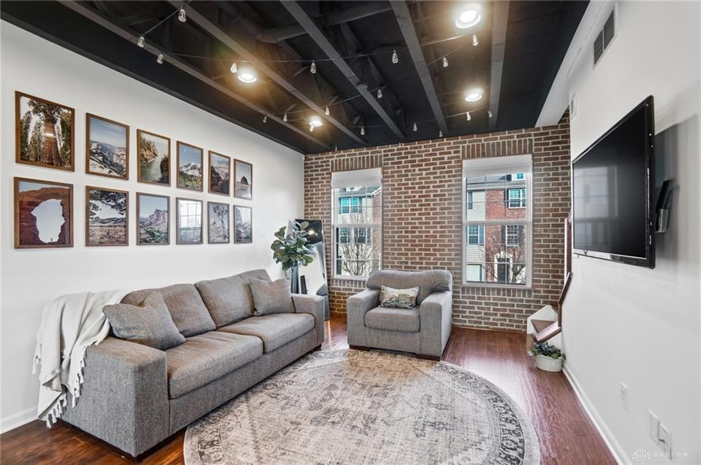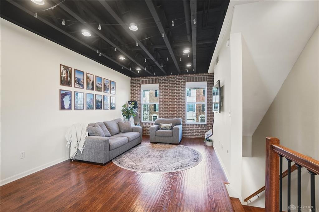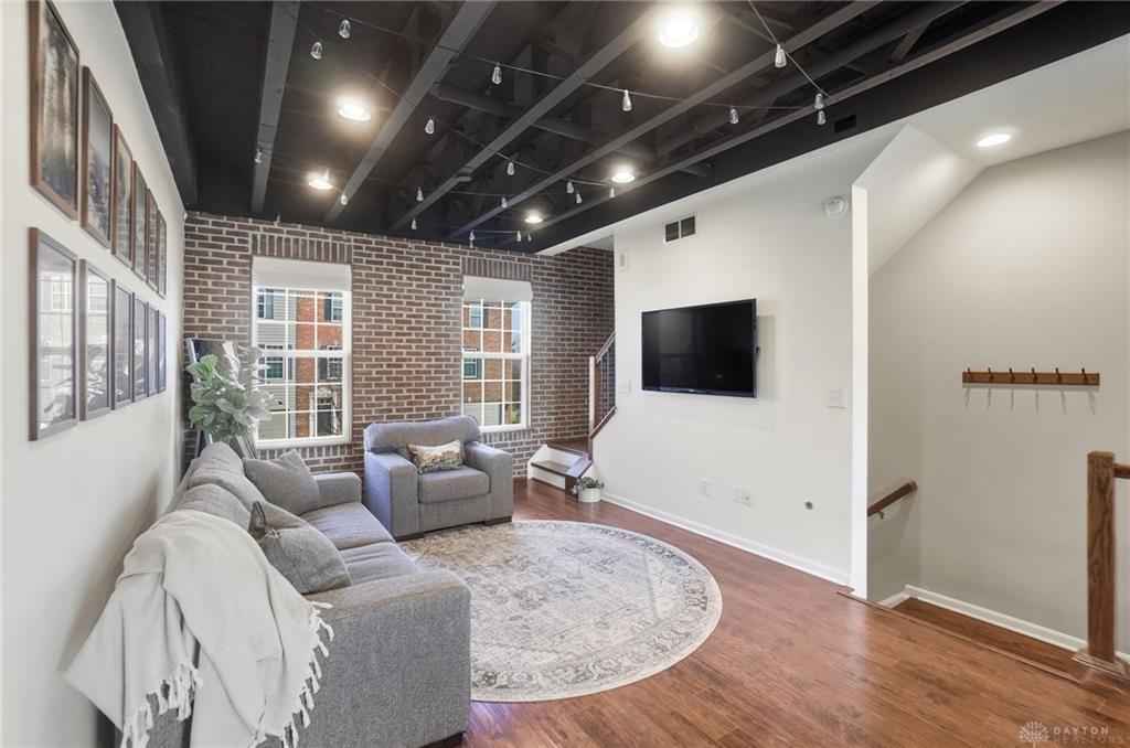 Striking loft-style brick condo featuring exposed ceilings, a sleek updated kitchen, and bright open living spaces with a private patio and deck. This beautifully maintained 2 bedroom, 1.5 bath home offers a modern, airy layout designed for compfortable living and entertaining. Built by Simms, the condo showcases quality craftsmanship and contemporary style thoughout. Enjoy the convenieince of an attached one-car garage, walking trails and community pool along with inviting outdoor spaces perfect for relaxing or hosting guests. You'll find all this in a desirable Washington Township location close to I-675, shopping and restaurants. Set up your showing today!(watch full video for a virtual tour of this incredible space. More photos to come soon.)
