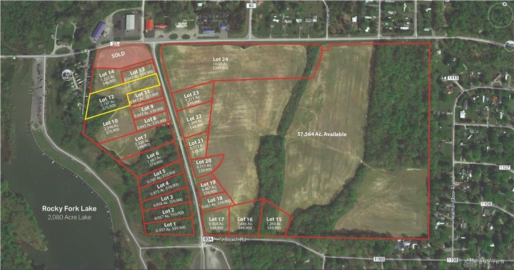 Build your dream home or the perfect vacation home in Lakeview Estates! Waterview, wooded lot at Rocky Fork Lake. Dock access available. Public water & sewer available at street. Spectrum internet.